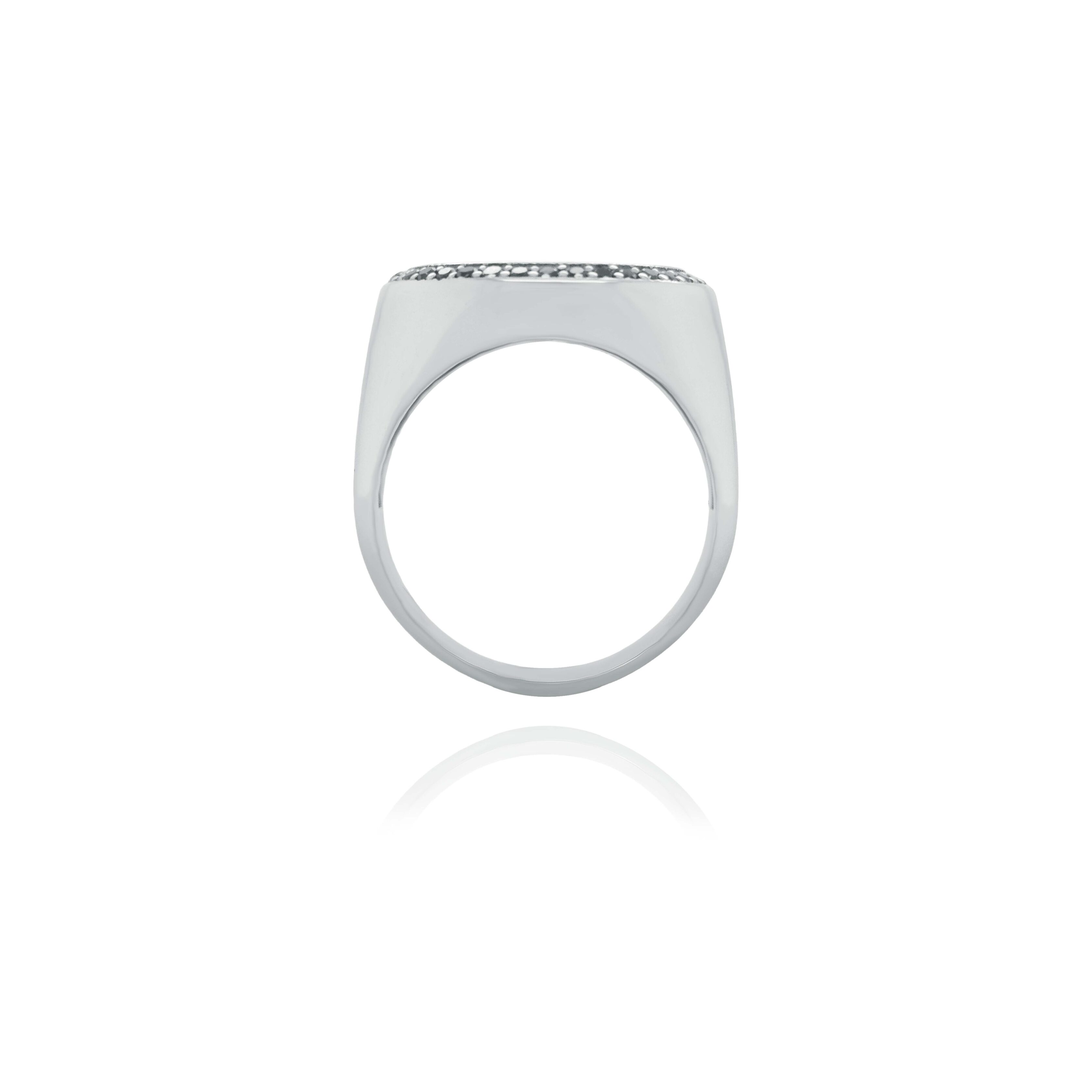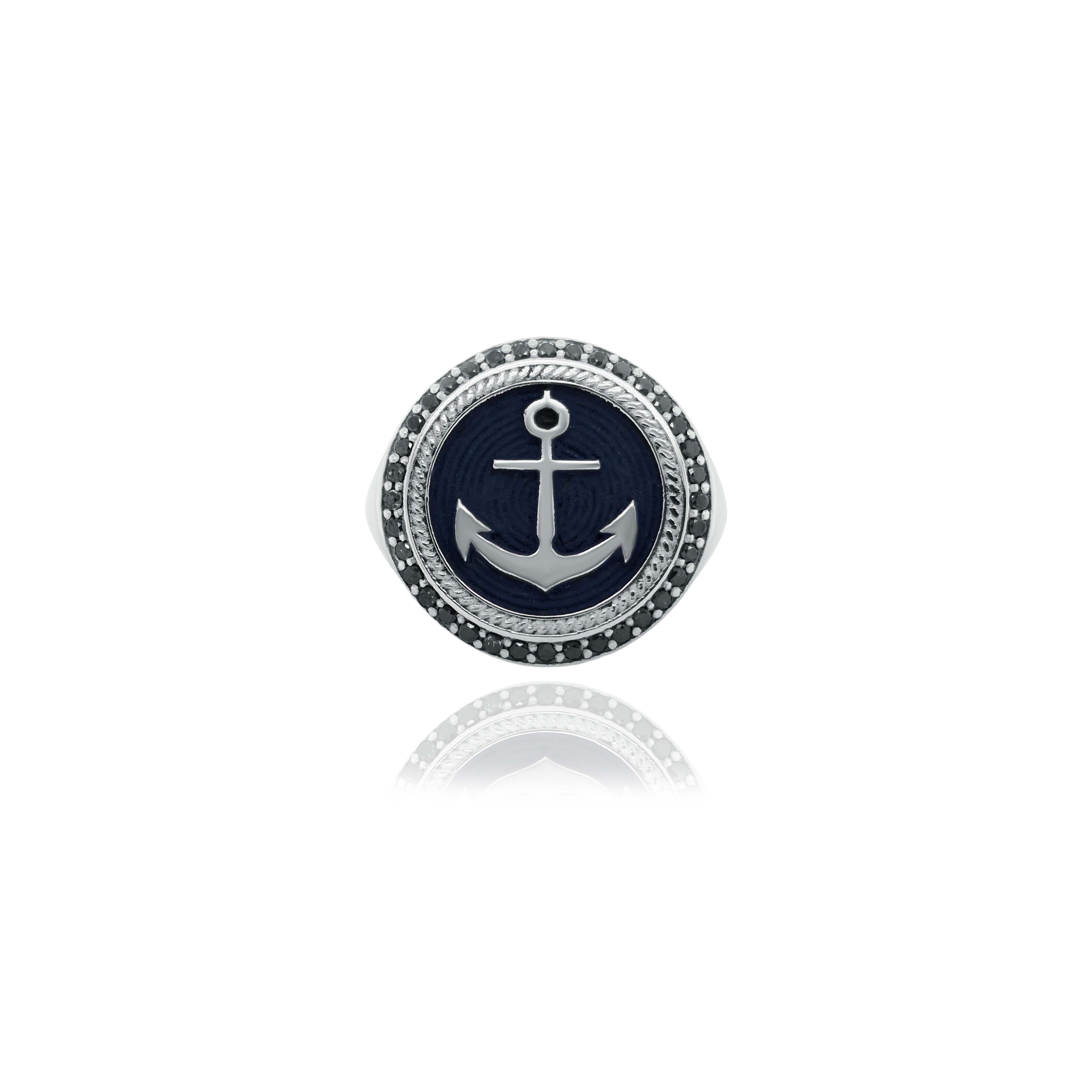 Dominantním prvkem šperku je centrální lodní kotva, detailně propracovaná do nejmenších linií. Její pevná silueta symbolizuje stabilitu, oporu a vnitřní sílu, které se promítají do celkového vyznění prstenu.